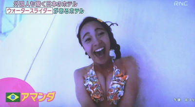 その前にウォータースライダーを先に滑ったアマンダのサービスショット。