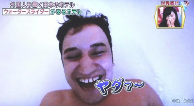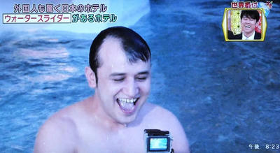 そんなオメルに悲劇が・・・ ウォータースライダーがあるホテルでの1コマ。