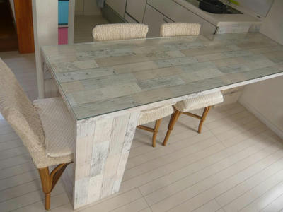 手で テーブル を リメイク されたそうです。 それがコチラ! の 画像。