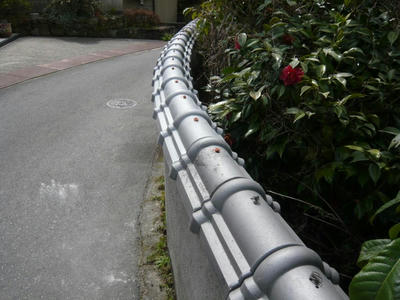 これだけ道路がカーブしている為、 塀瓦の修理は、何と 3回目との事。 次が無い