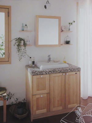たぐい を 集成材の カウンターの上にのせて 洗面台を製作してる場面を よく