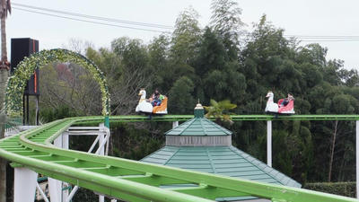 娘は、そんな事 どこ吹く風。スワンライダーで 見知らぬ婆ちゃんと