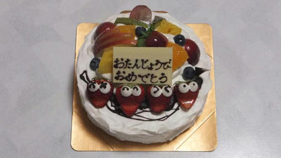 今年、誕生日に用意したのが こちらのケーキ で ございます~