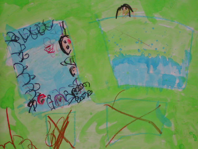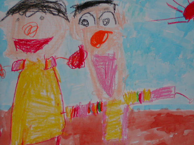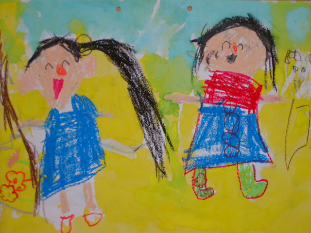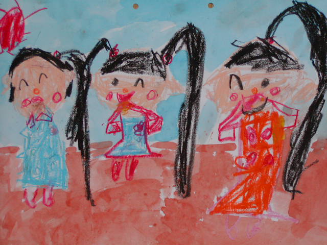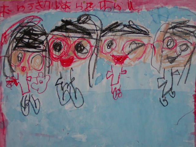 遠近法 バッチリ?。 後ろの子の 鬼の形相 もよく描けてる。