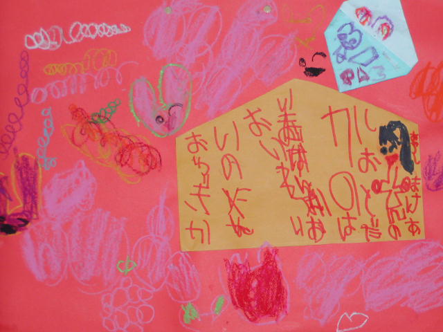 娘が 去年 1年間で 保育園で描いた作品を 持ち帰って 参りました