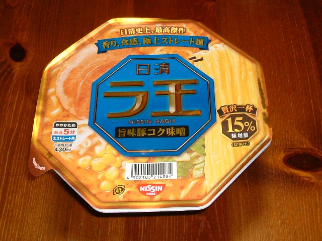 日清 「ラ王」、 健さん 一押しは この 旨味豚コク味噌 味。 普段は 味噌味は
