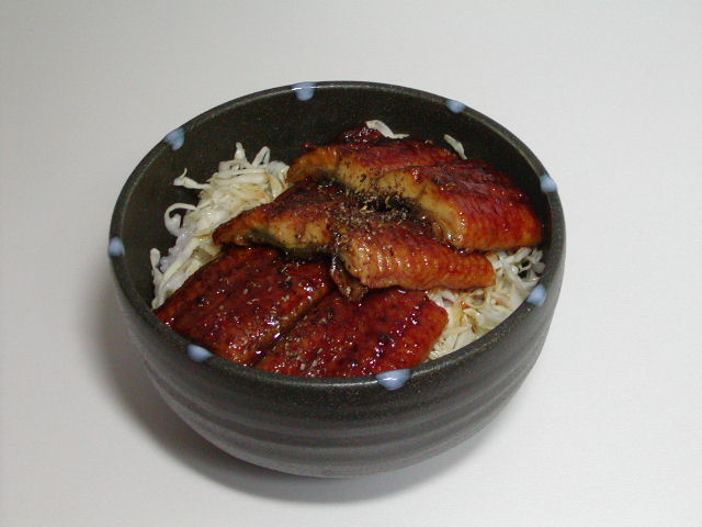 健さんは チョット ヘルシーに うなぎの 下に 「キャベツのうまたれ」 で