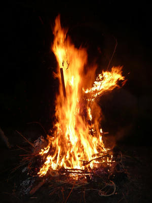夜、行う「 とんど焼き 」 は、対岸から 火事と間違われて
