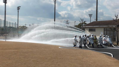 消防団員も消防車によります一斉放水を行いましたよ~ いや~寒そう。