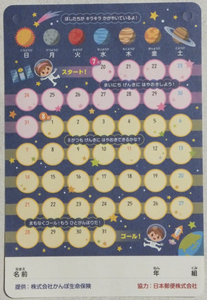 娘に、「アンパンマンの ラジオ体操出席カード の 方が