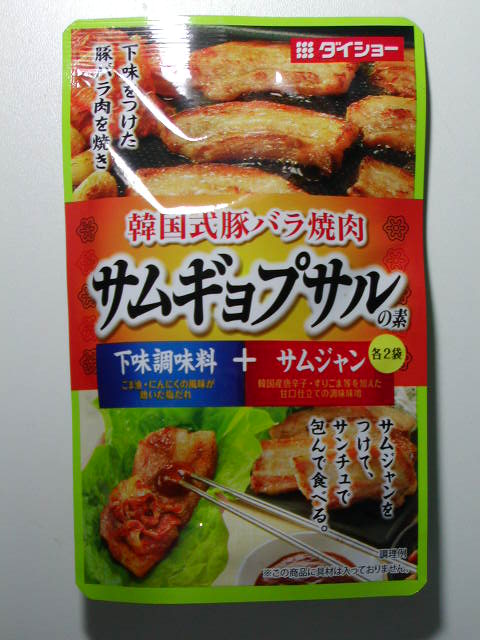 ダイショー さんが出してる 「サムギョプサルの素」 で 調理して おりまして・・・