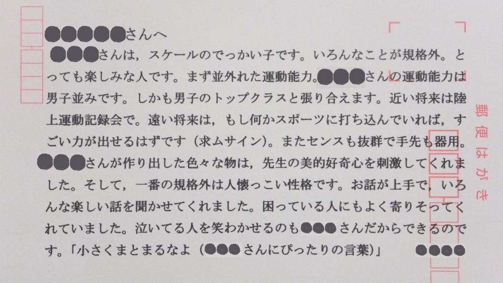 1人、1人に ハガキに書きました 送る言葉 でしょう