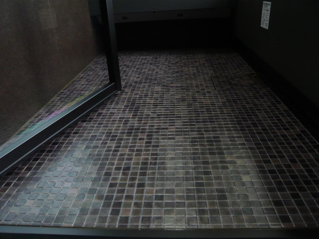 入口の扉は、開き戸(透明強化ガラス)で そこから 石畳の様な床が