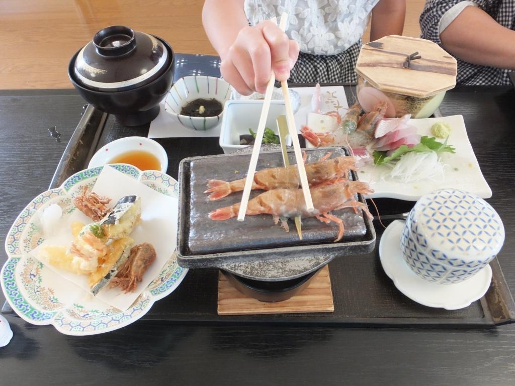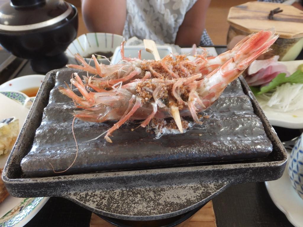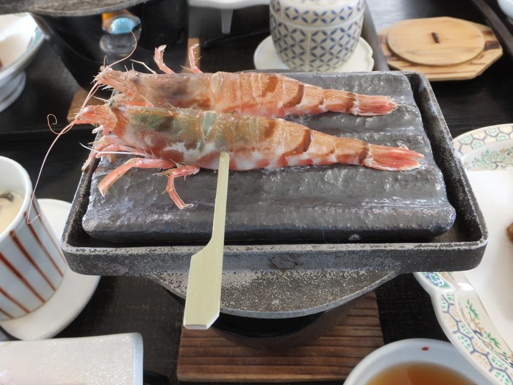 もさえび尽くしの料理のメインが 活もさえび を 豪快に焼いて食べると言うもので