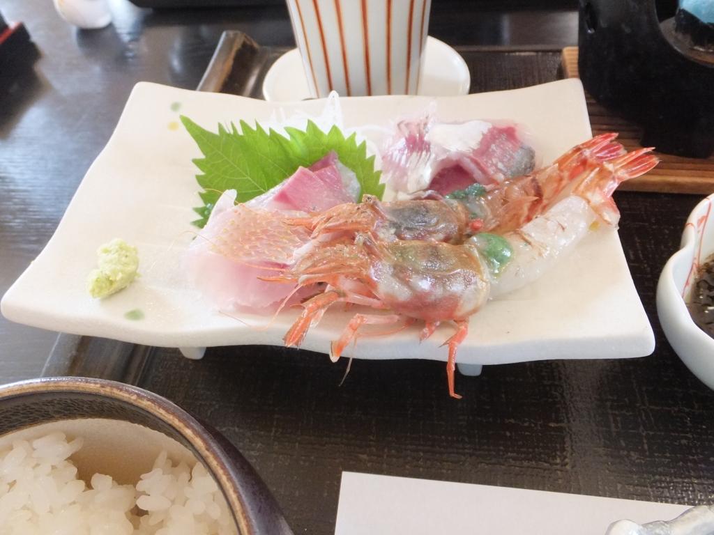 もさえびのお造り他2種。 もさえび 甘くて 濃厚~ 他は、 アジ ・ ノドクロ か?