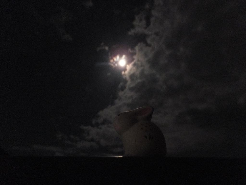 イコマ製菓本舗さんに送りますハガキも窓辺に置きまして・・・ スーパームーンの
