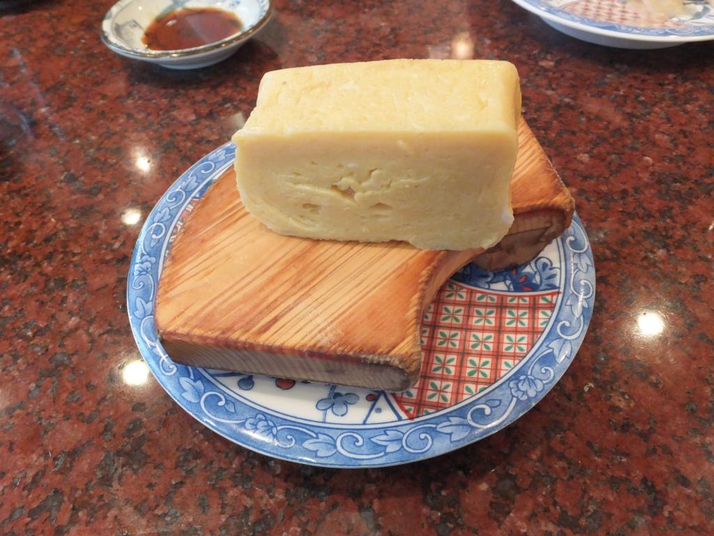 それが こちら 180円(税込)皿の、 超〈特製〉厚焼玉子 です。 で、でかい。