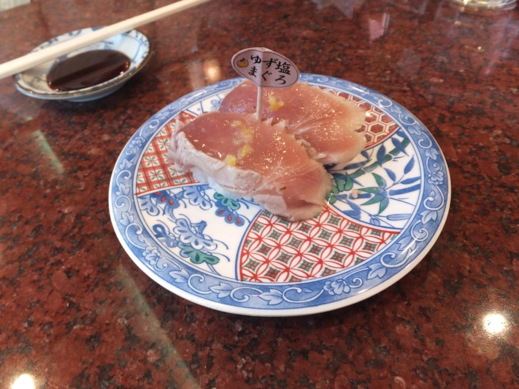 ゆず塩まぐろ も 180円(税込)皿で 美味しかったです。 3人(息子を除く) で