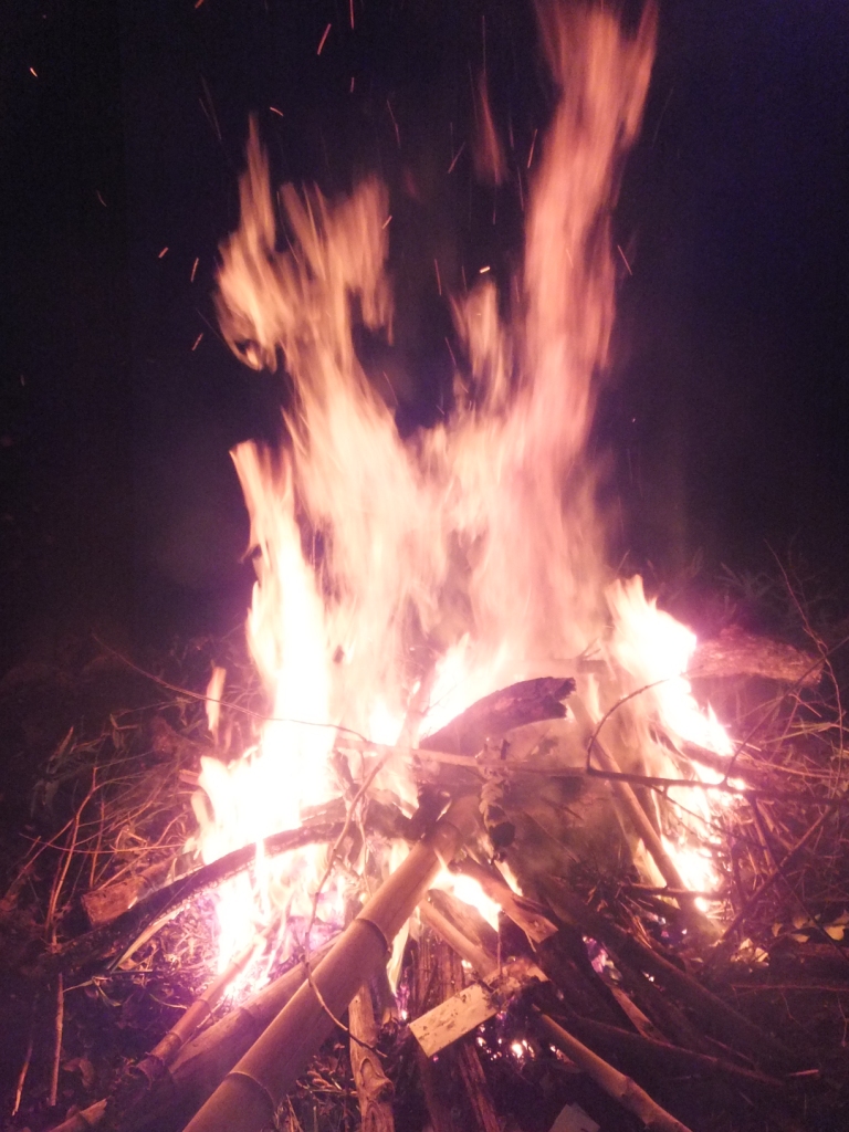 炎に 願無病息災の願いを しっかり込めつつ 煙やら 炎から伝わる熱やら
