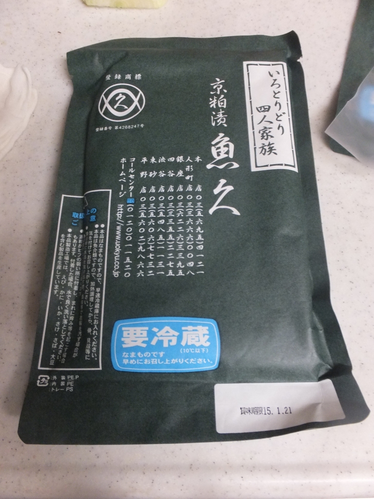 東京 京粕漬 魚久 さんの 「いろとりどり四人家族」 1セット 864円はゲット!。