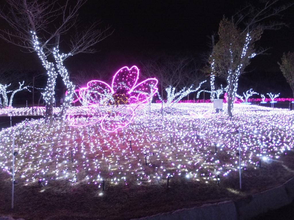妻から 国営備北丘陵公園(広島県庄原市) の イルミネーション、 また