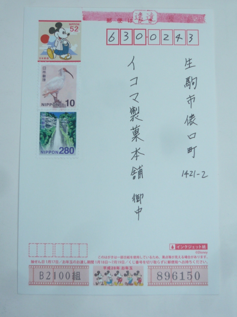 今回、健さんが応募した葉書が平成28年お年玉年賀はがき っす。