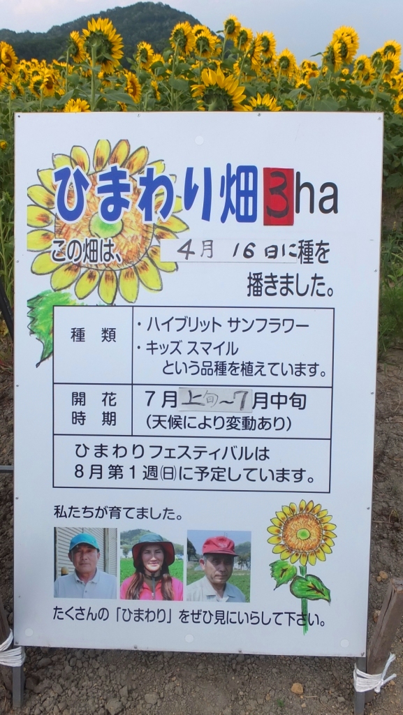 でも 来てみるもんですね。こんなプチ情報をゲット!。 ひまわり畑の広さは 3ha。