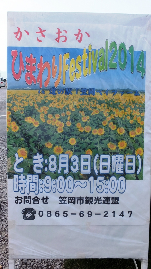 笠岡 ひまわり フィスティバル 2014 が 今年も 開催されると言う 告知看板 もあり