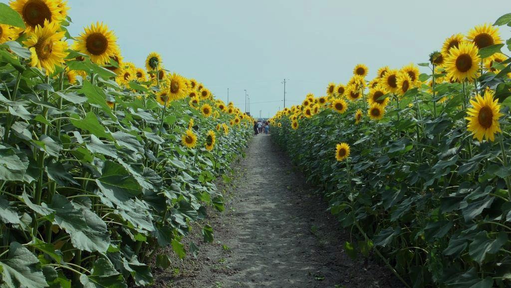 大体、9000坪を超える畑に キッズ スマイル ・ ハイブリッド サンフラワー と 言う