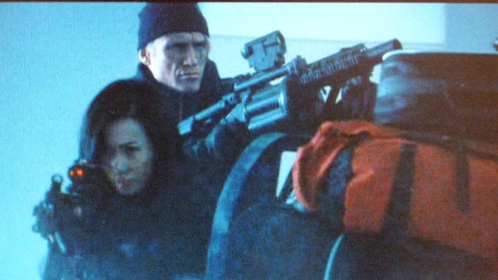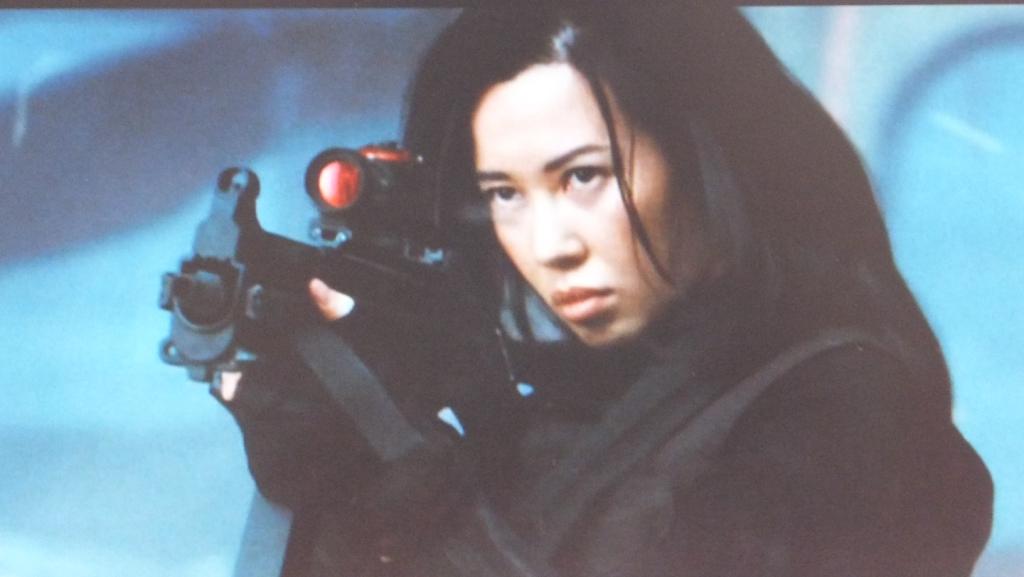 ドイツ H&K社の短機関銃、H&K UMP を持つ マギー・チャン(ユー・ナン)。