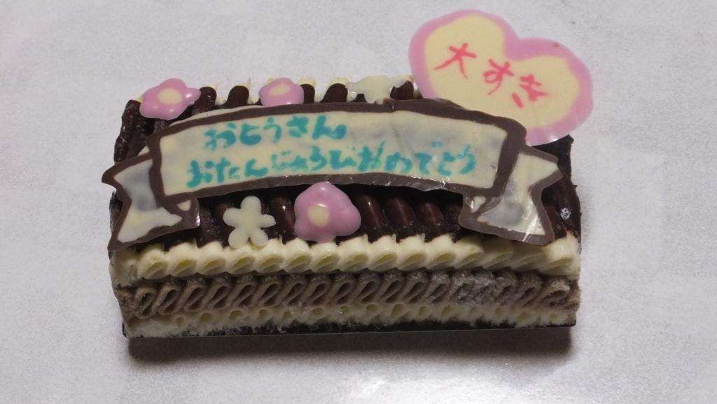 もらい チョコレートで 「お父さんたんじょうびおめでとう」って プレート?