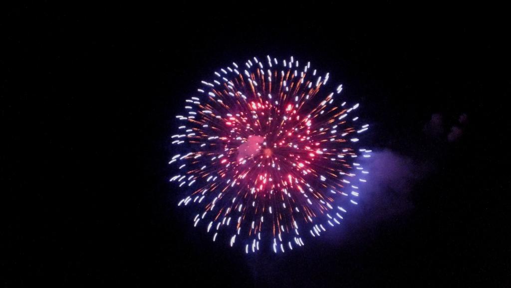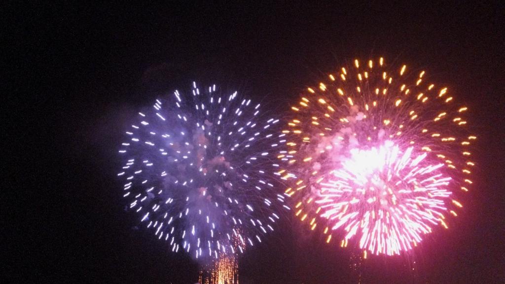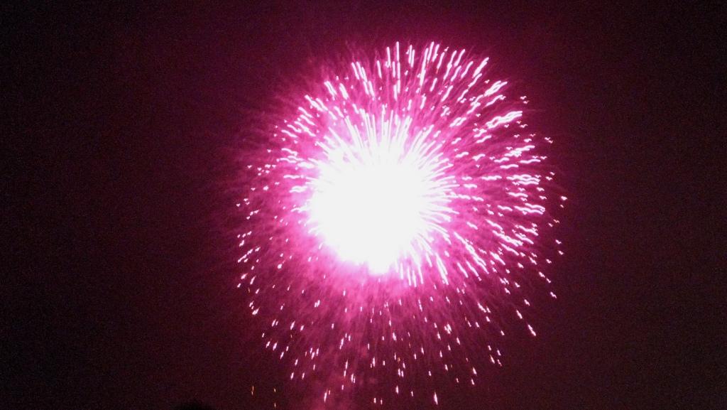 紫色 ・ 橙色 ・ ピンク色 の 3色、こんな花火も 上がって おりました~。 みてみて!