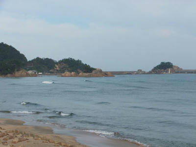 開店を待つのも あれなんで 道路を挟んだ 浦富海岸第一駐車場で監視を開始。