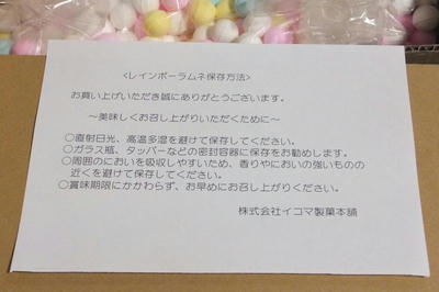 レインボーラムネの保存方法 なんて紙も 入っておりました。 昔もあったっけ?