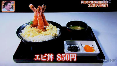 これが 秘密のケンミンSHOW で 紹介された エビ丼 850円 です。