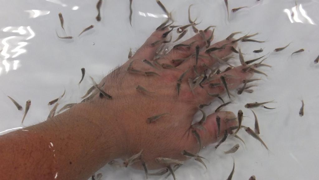 満足してくれました。 健さんも 「ドクターフィッシュ」 ちゃん に 治療をして